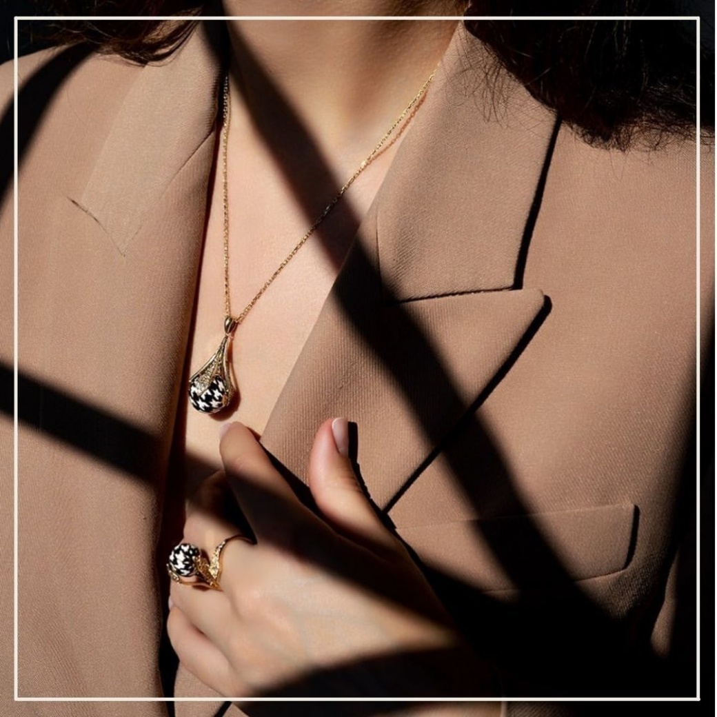 “Гусиная лапка” сегодня — остромодный тренд, который успел засветиться в коллекциях именитых домов моды. А вот ювелирное украшение с узором, который мы привыкли видеть лишь на тканях — довольно редкое явление.