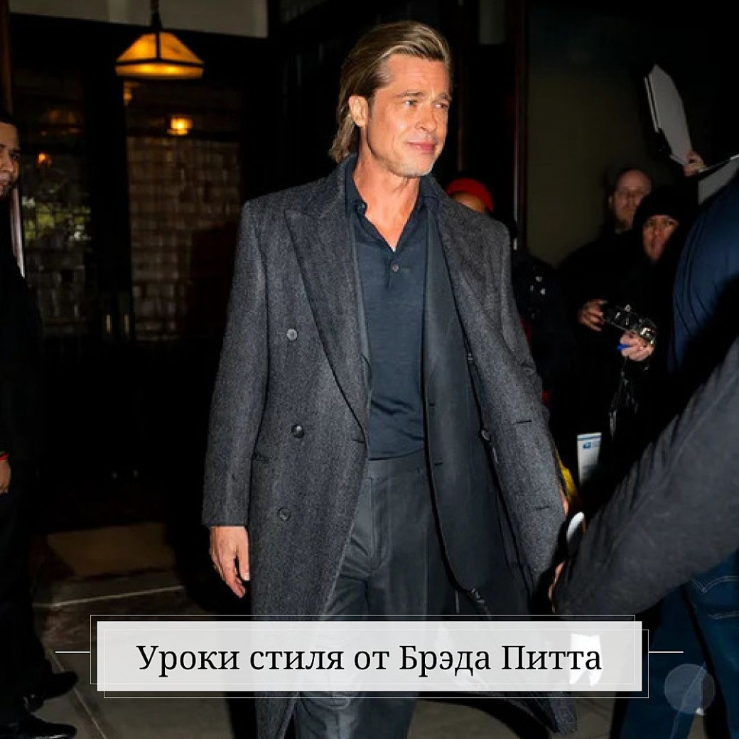 Стиль Брэда Питта — это статусная элегантность и непринужденность в любом образе. Он одинаково модно выглядит в футболке и классическом костюме под длинное пальто нейтральных оттенков.