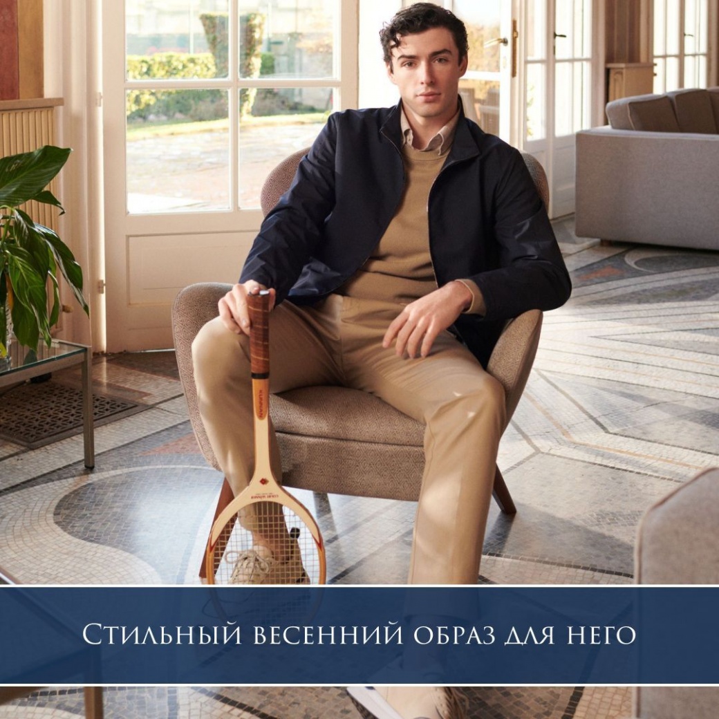 Как вам сегодняшний мужской образ? Легкие брюки и уютный джемпер под рубашку в тон. Стильный бомбер универсального цвета приятно разбавляет песочный Total Look.